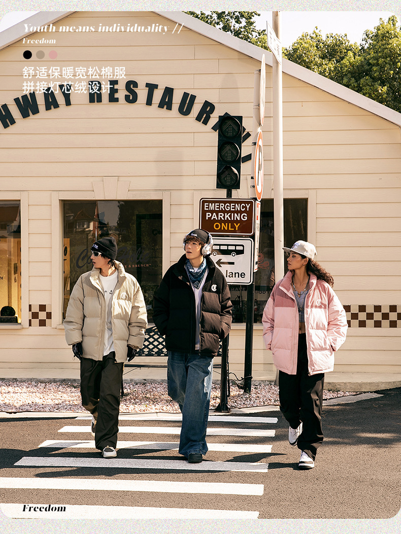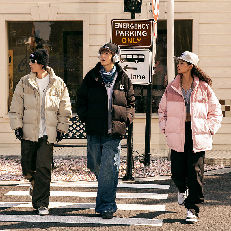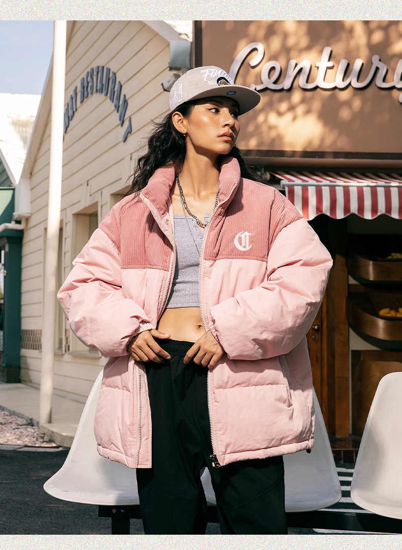 Corduroy-Trim Padded Coat – Embroidered